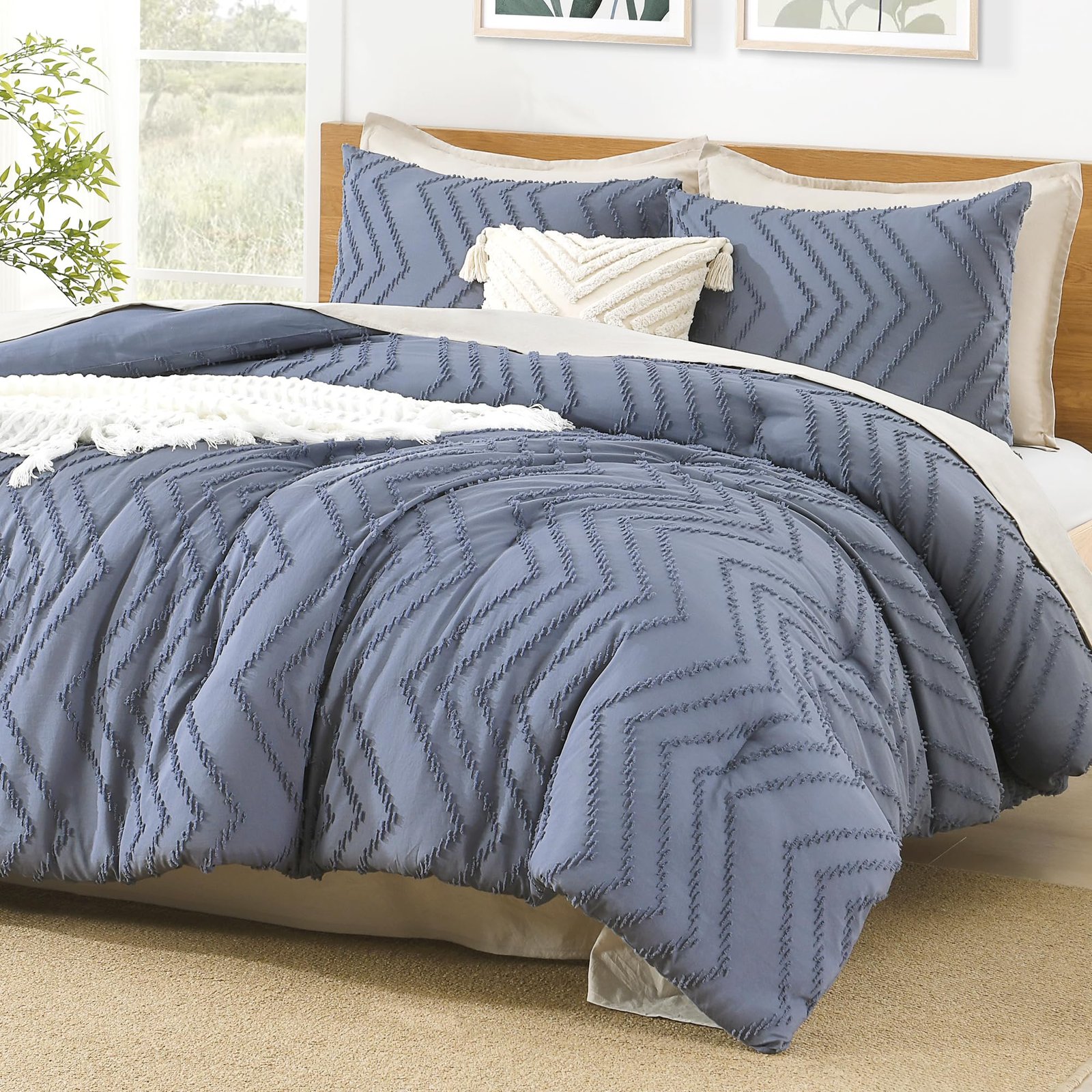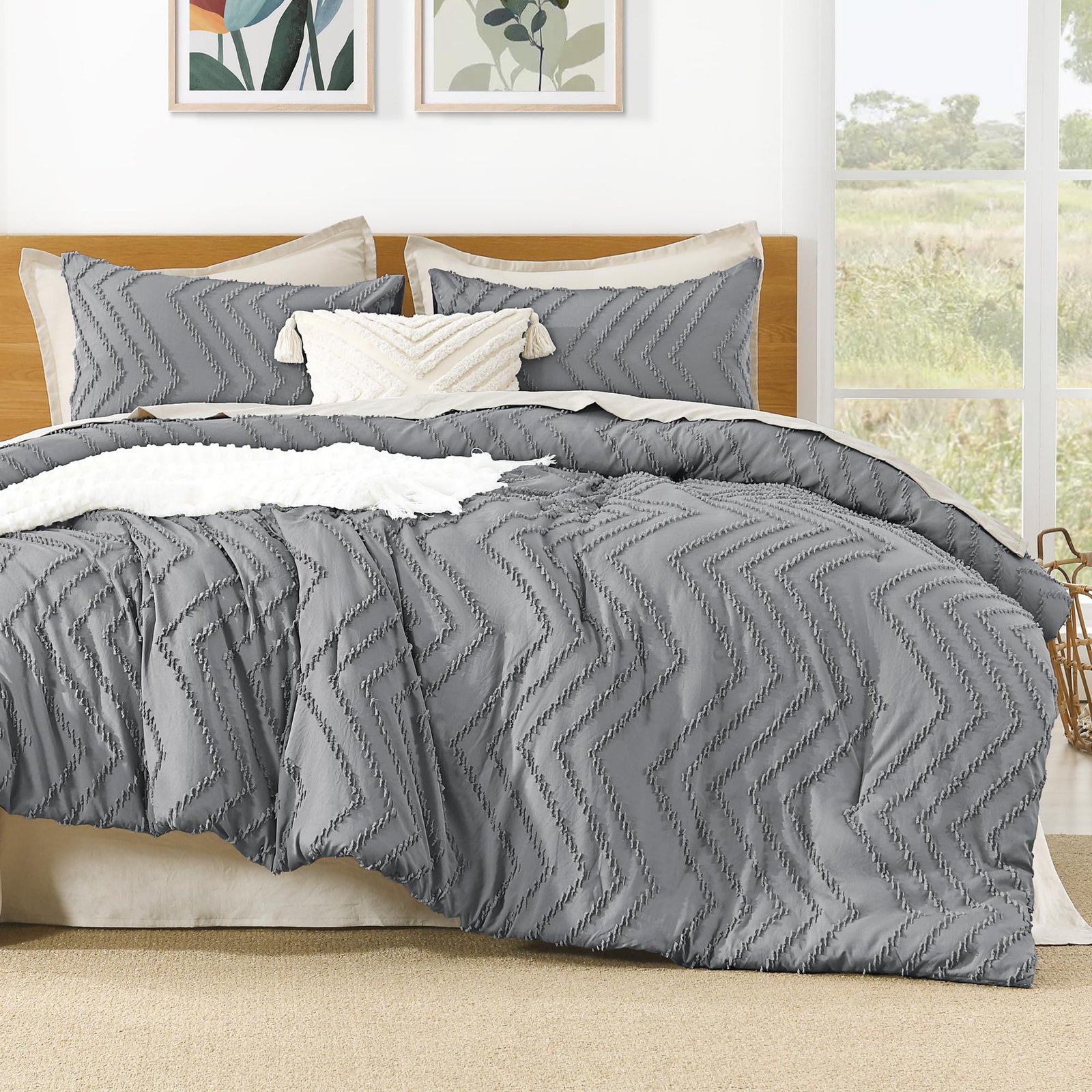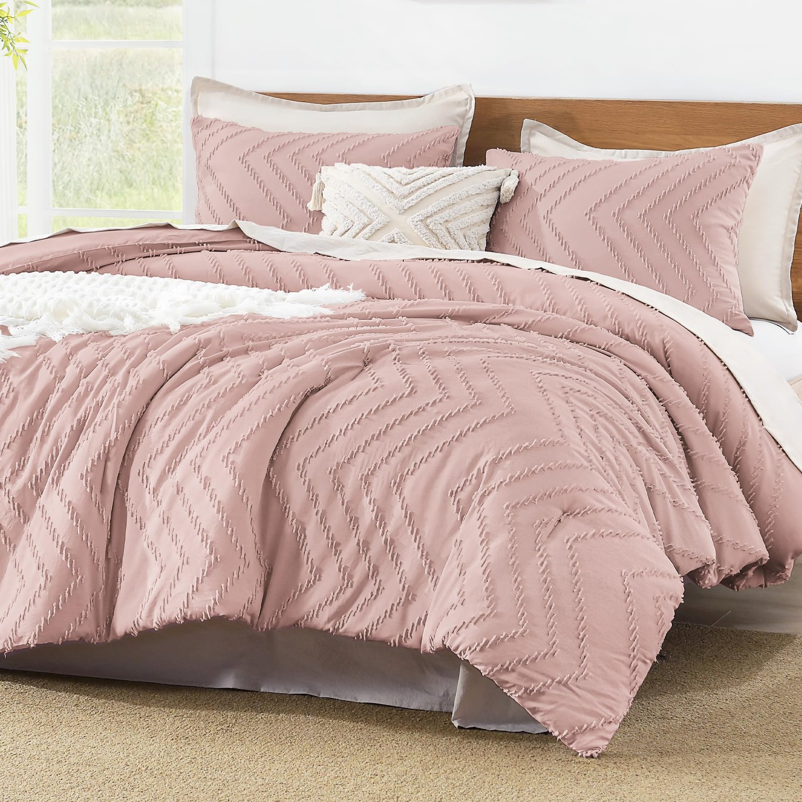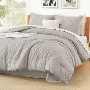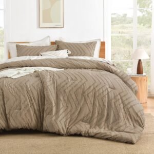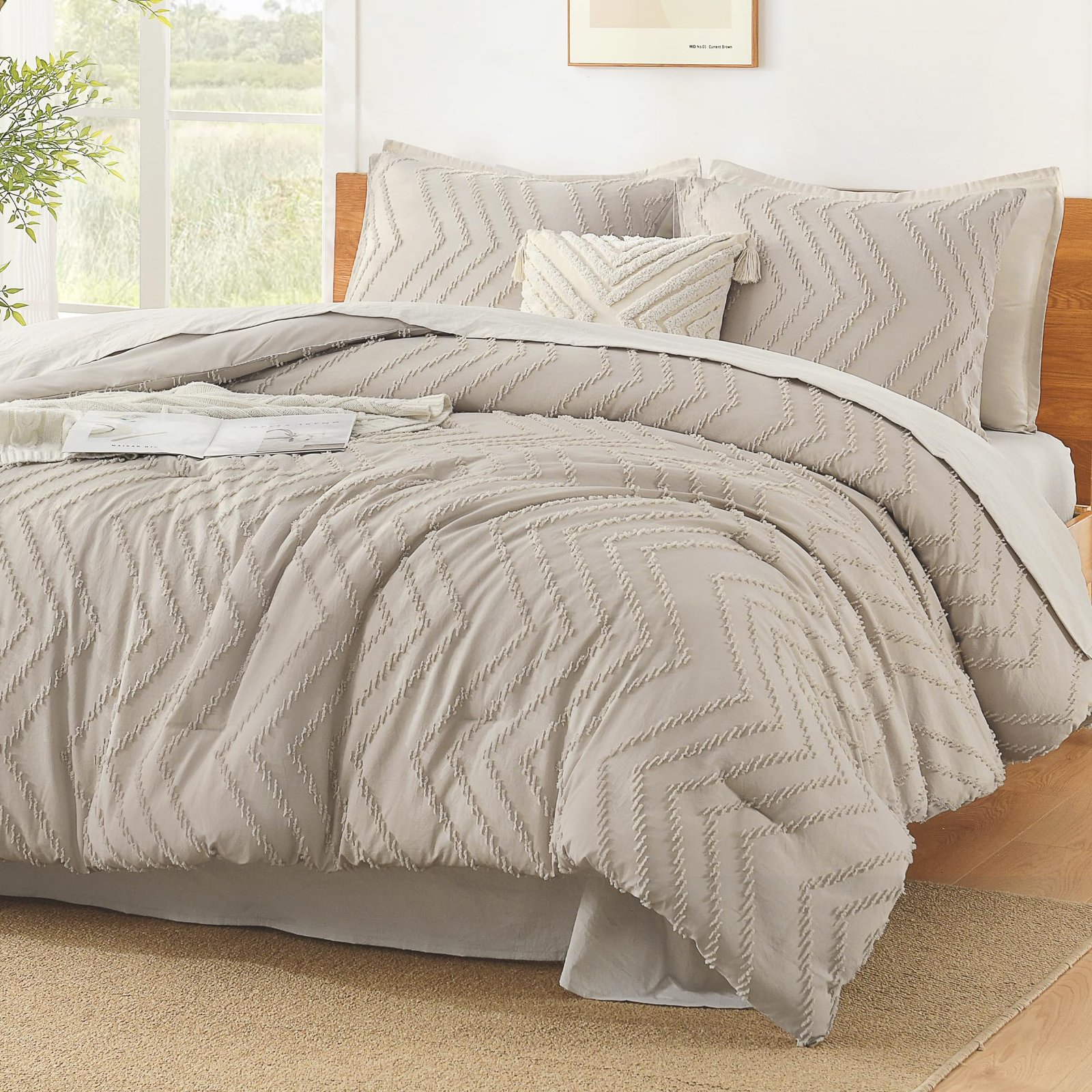 JANESHA LATRICE King Size Comforter Set Beige, Boho Cream Soft Warm Tufted Neutral Bedding Comforter Sets for King Size Bed, 3 Pieces Aesthetic Chevron Farmhouse Cute Bohemian Textured Bedding Set