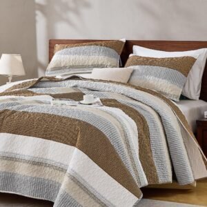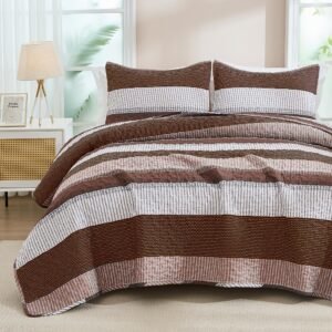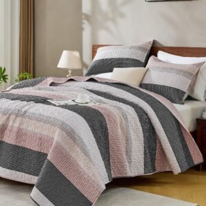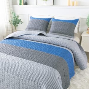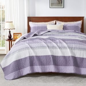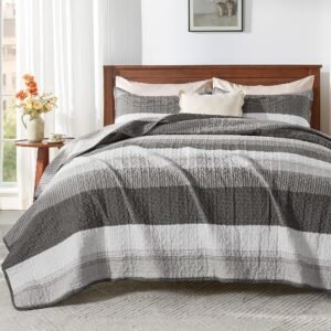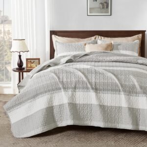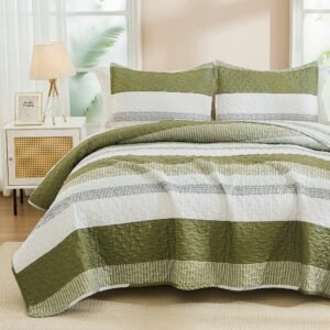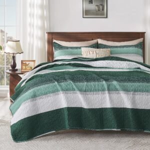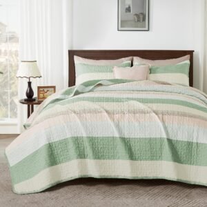 Arkmoving King Size Quilt Set Sage Green, 3 Pieces Mint Green Ultra Soft Lightweight Bedspreads & Coverlets Set, Patchwork Striped Quilted Bedding Sets for All Seasons (1 Quilt, 2 Pillow Shams)