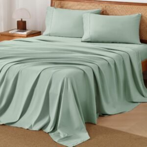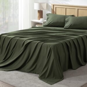 JANESHA LATRICE King Size Sheets Set 4 Pieces, Dark Olive Green Super Soft Sheets for King Size Bed, Microfiber King Sheet, Deep Pocket Up to 16