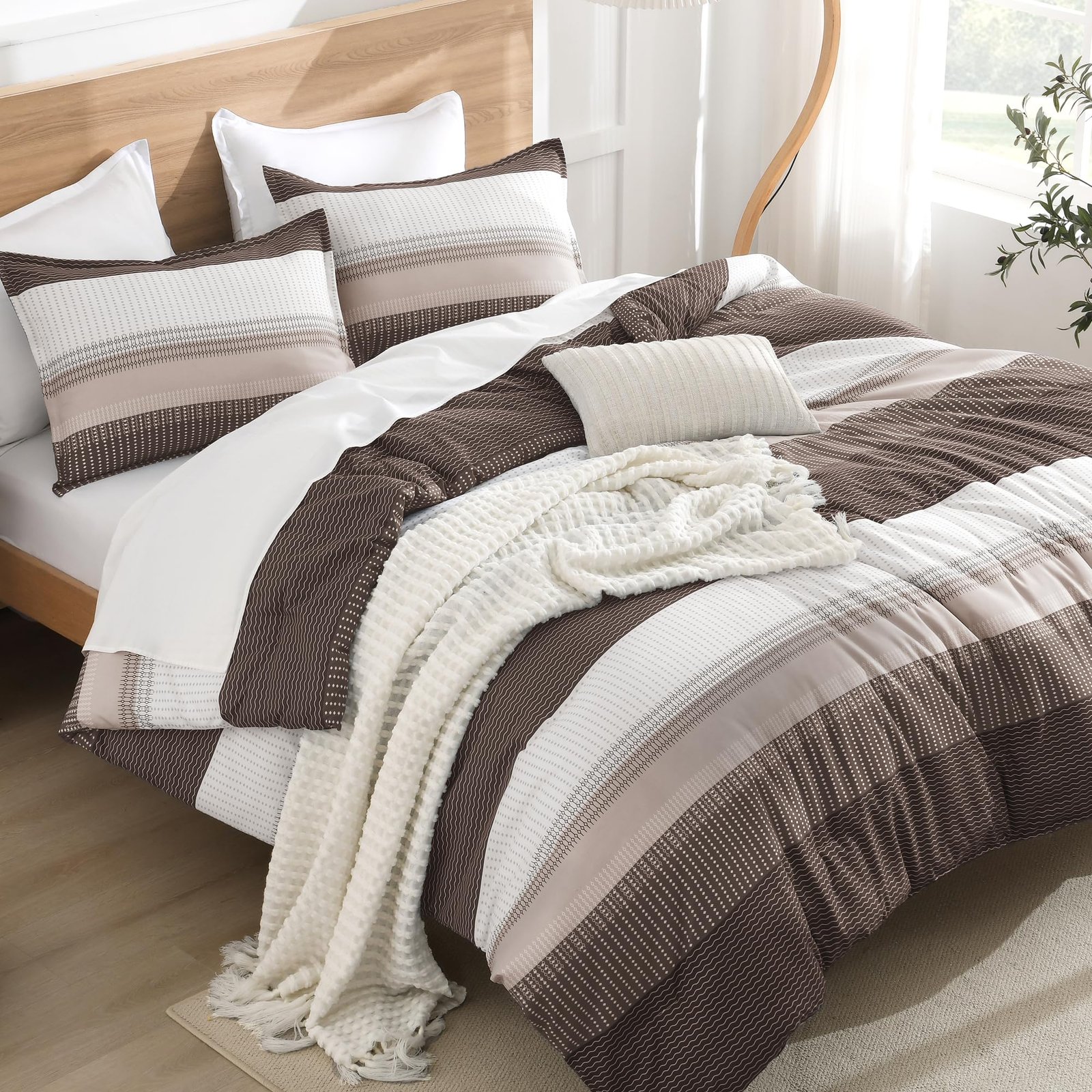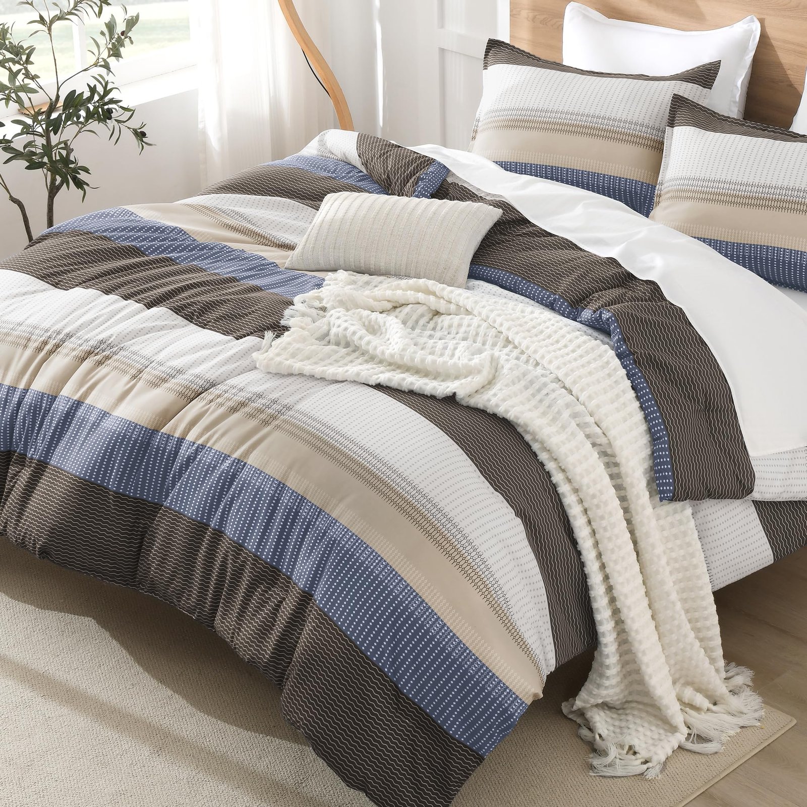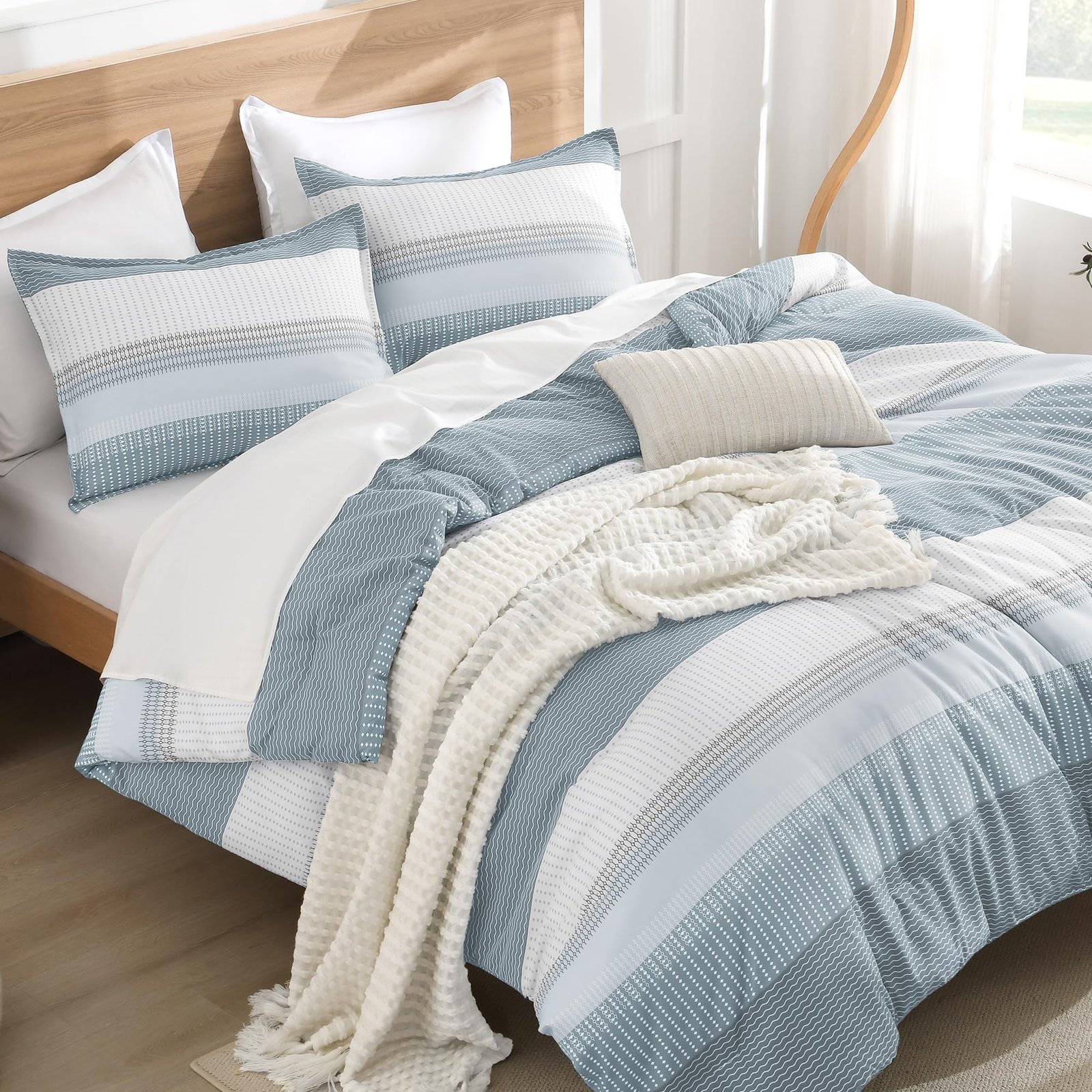 JANESHA LATRICE White King Size Comforter Set(104x90Inch), 3 Pieces Cute Soft Pinch Pleat Bedding Comforters & Sets, All Season Lightweight Down Alternative Bed Set for Men Women