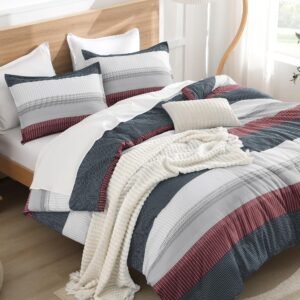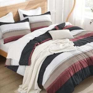 JANESHA LATRICE Queen Comforter Set Black White Grey – 3 Pieces Lightweight Summer Bedding Set, All Season Down Alternative Comforter (1 Comforter, 2 Pillowcases)