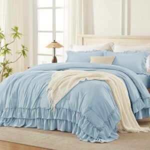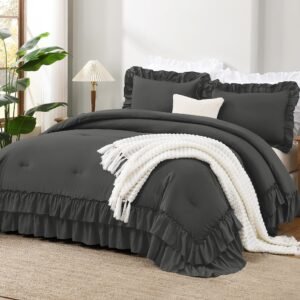 JANESHA LATRICE White Comforter Queen Size, 3 Pieces Ruffle Shabby Chic Farmhouse Queen Comforter Sets, All Season Lightweight Fluffy Room Decor Bed Set for Girls Women Teens Gift Choice