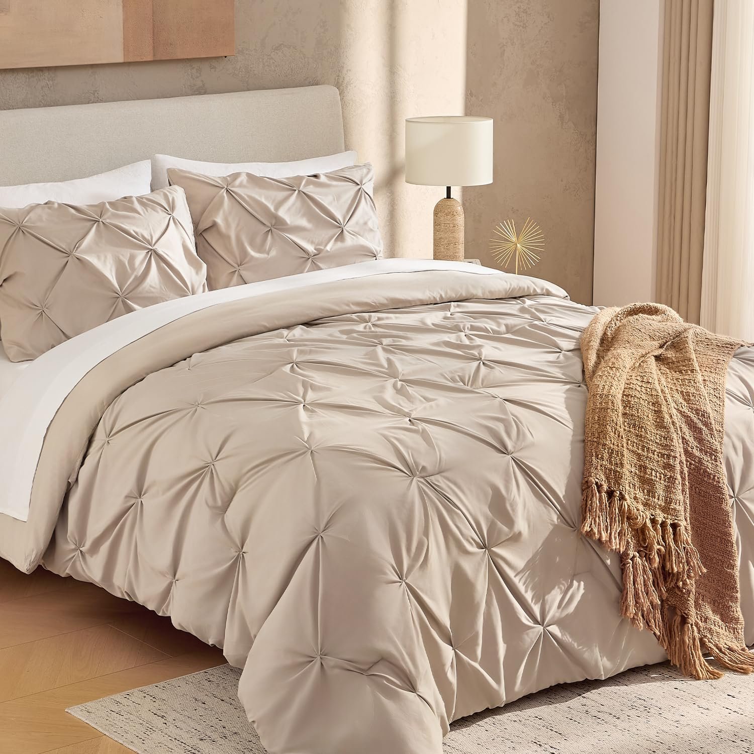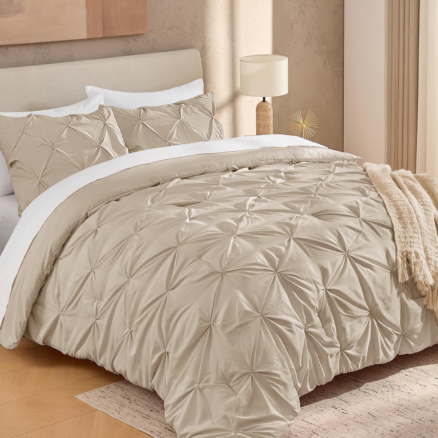 · HANDMADE & EXCELLENT CRAFTSMANSHIP: Every pleat is handmade for an exquisite look. The mature technique and experienced craftsmanship keep the comforter always in condition, which accordingly ensures the quality of your sleep life.